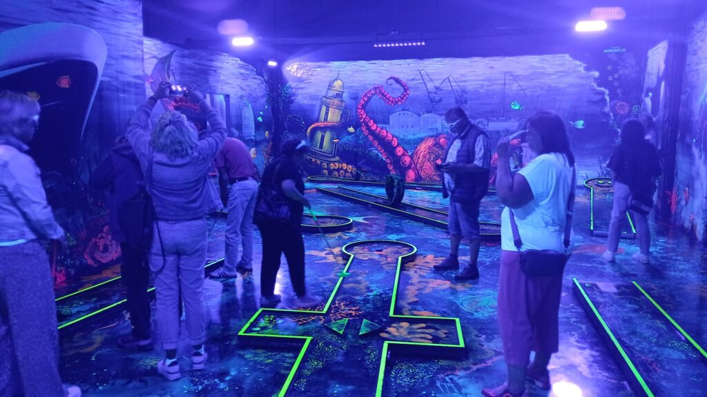 Weiter ging es mit einigen Stops für Fotoshooting und Beetletaufe von Beetle Julchen, aus dem Bergischen Land, zum Schwarzlicht Minigolf und anschließenden Abendessen.