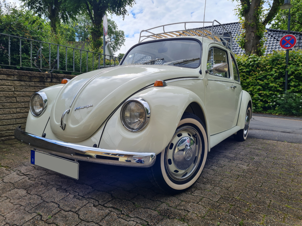 Zwei Jahre lang wurde restauriert, geschraubt und aufgearbeitet. Vieles an dem Sparkäfer von 1970 mit 1200 Hubraum und 6-Volt-Technik ist bis heute original. Besonders wichtig war mir, ihn wieder in seine ursprüngliche Farbe zurückzubringen: Pastellweiß, so wie er einst das Werk verlassen hatte.