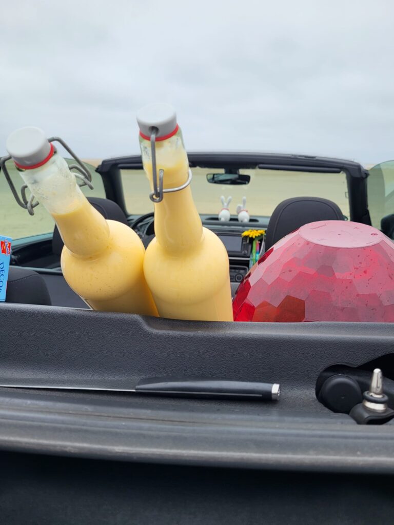 Es wurden bei Kuchen, Eierlikör, Alkohol freien Sekt und Schokoladeneier einige Taufen der Fahrzeuge und ein Fotoshooting gemacht.